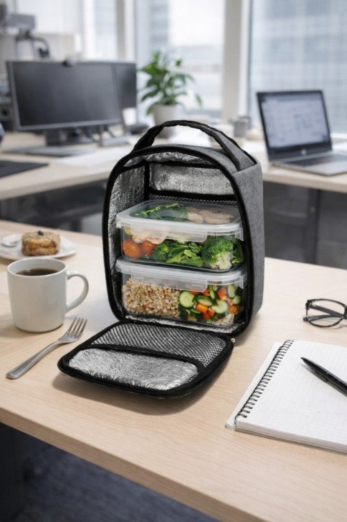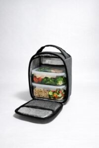 مثالية لحمل وجباتك اليومية إلى العمل، المدرسة، الرحلات أو النادي. تتميز بتصميم مدمج مع مساحة داخلية واسعة تكفي لوضع عدة علب طعام، إضافة إلى جيب داخلي/أمامي إضافي لتنظيم الأدوات أو الأغراض الصغيرة.