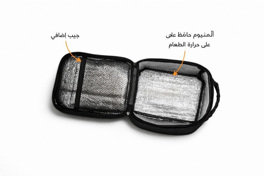 سهلة الحمل، خفيفة الوزن، ومصنوعة من خامات متينة للاستعمال اليومي. المميزات: بطانة داخلية من الألمنيوم للحفاظ على حرارة الطعام تحافظ على الطعام ساخنًا أو باردًا لفترة أطول تصمي